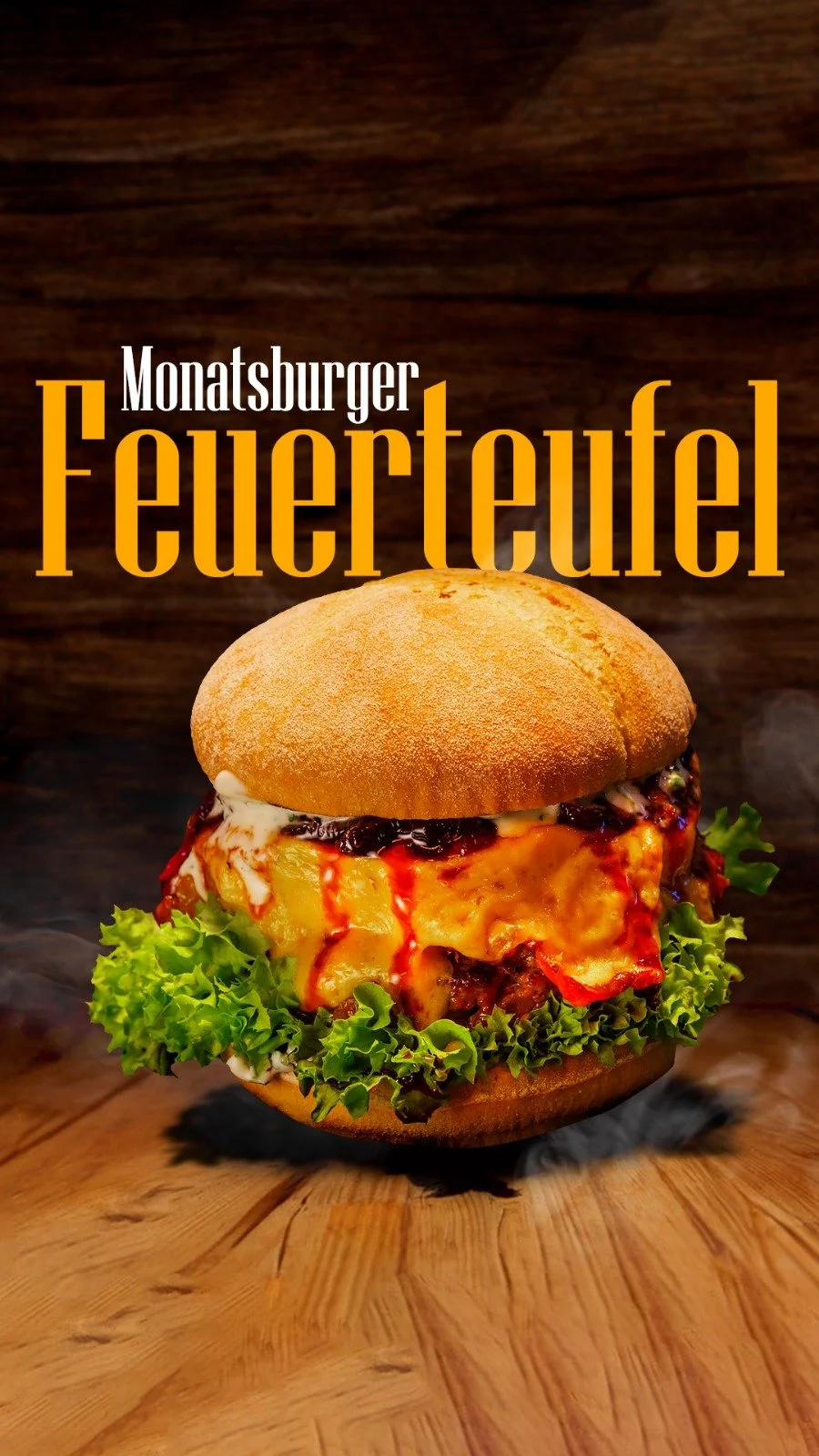 Monatsburger Oktober 2025 RindfleischpattyCiabatta-BunLollosalatTomate & GurkeCheddarSpeckHot-BBQ-SaucePeperoncini CHF 19.50 “Making of” von einem Monatsburger